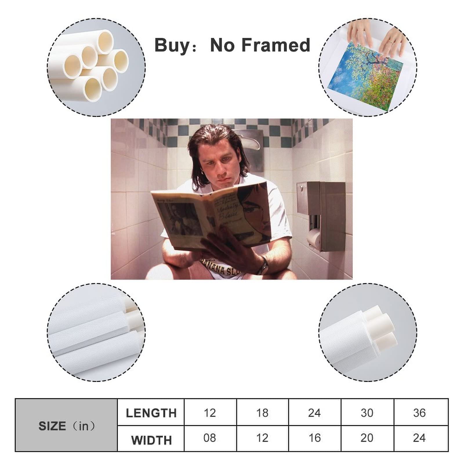 Vincent Vega On Toilet Funny Bathroom Art Posters Cool Wall Decor Art Print Canvas Posters for Room Canvas Art Poster And Wall Art Picture Print Modern Family Bedroom Decor Posters 12x18inch(30x45cm)