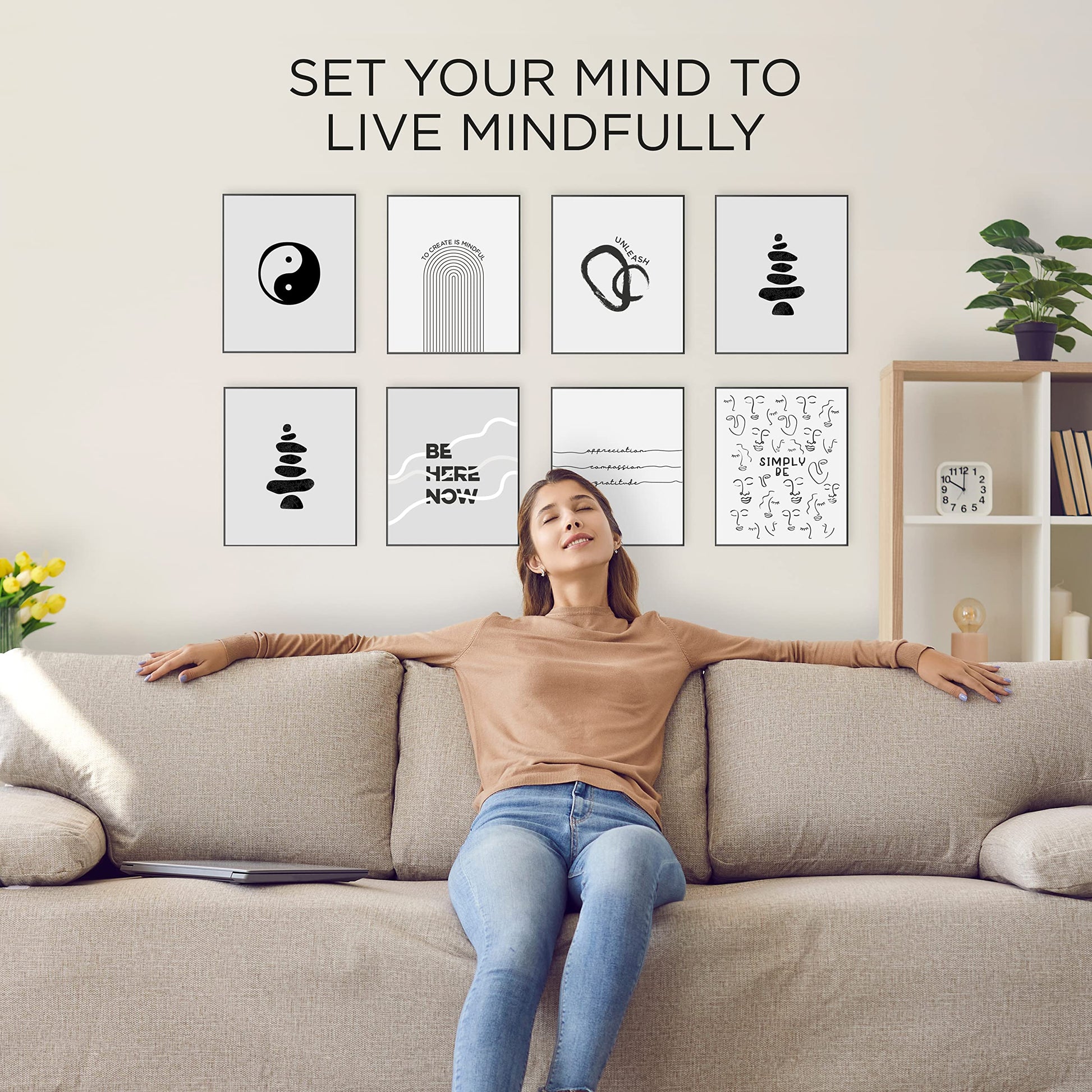 Wall Collage Art Prints, Artistic Modern Decor Print Artwork with Quotes— Set of 8 Posters & Prints for Wall Collage, 8-Pack Wall Art Prints in 8x10 (Mindfulness)