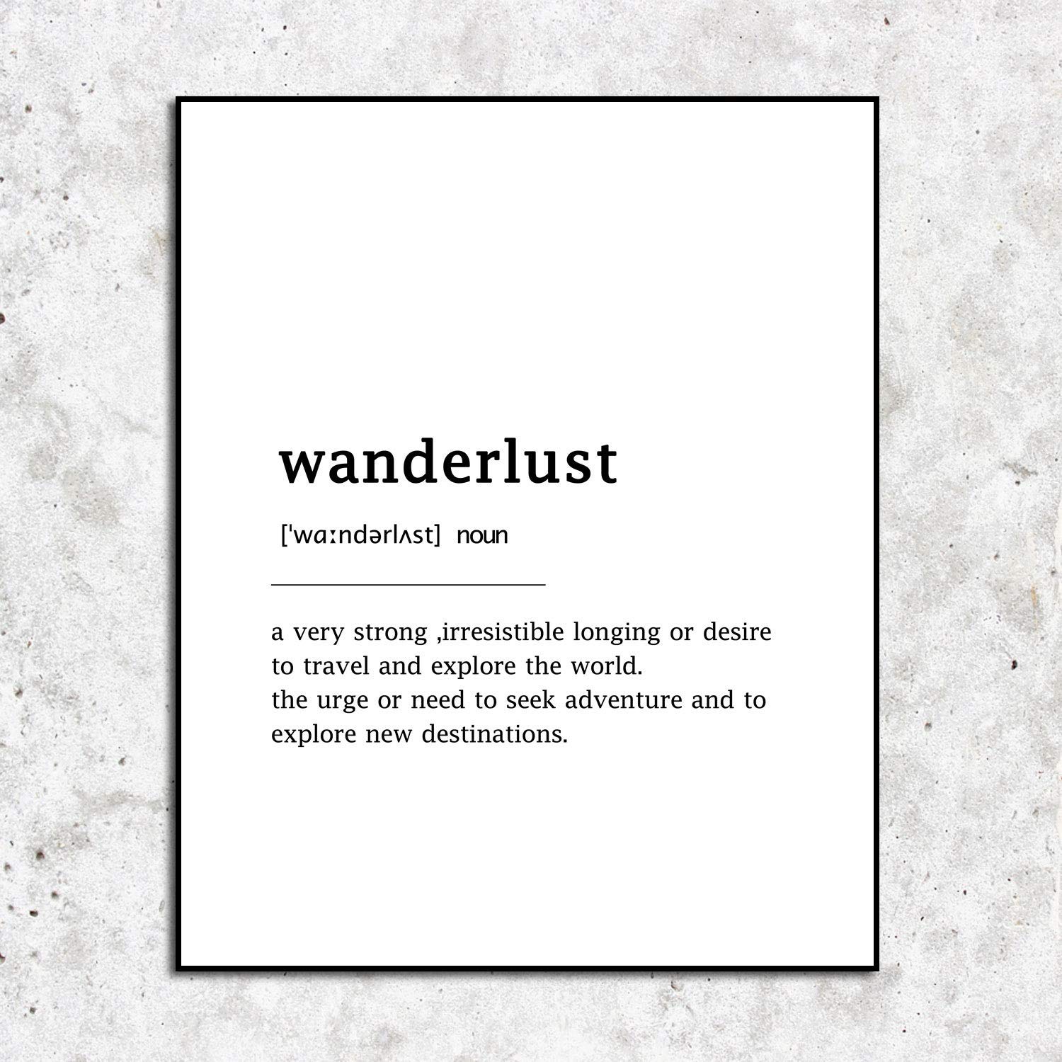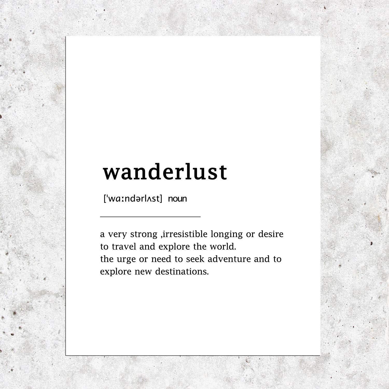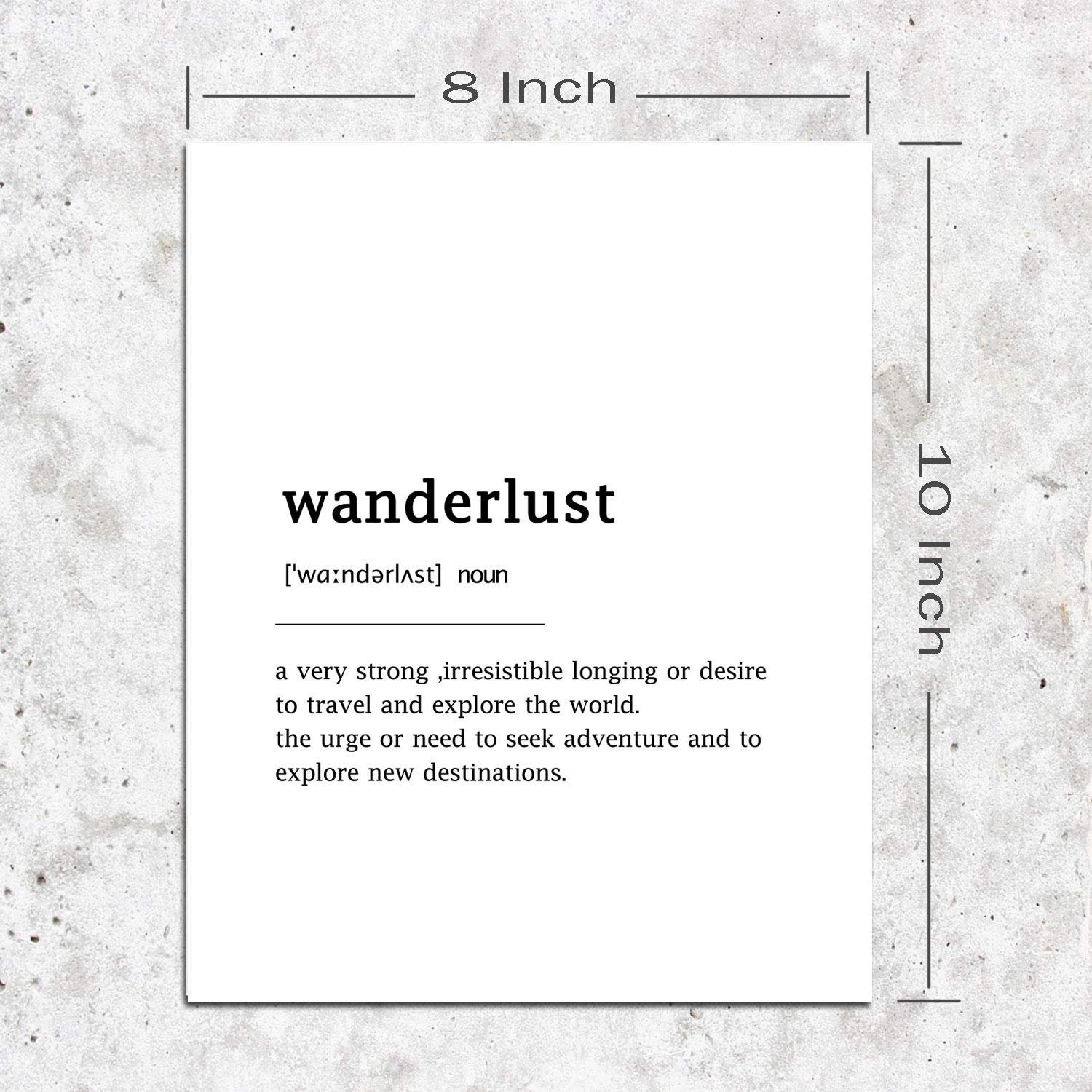 Wanderlust Definition Wall Art Poster Inspirational Typography Home Decor Print Minimalist Motivational Art Poster 8x10inch Unframed