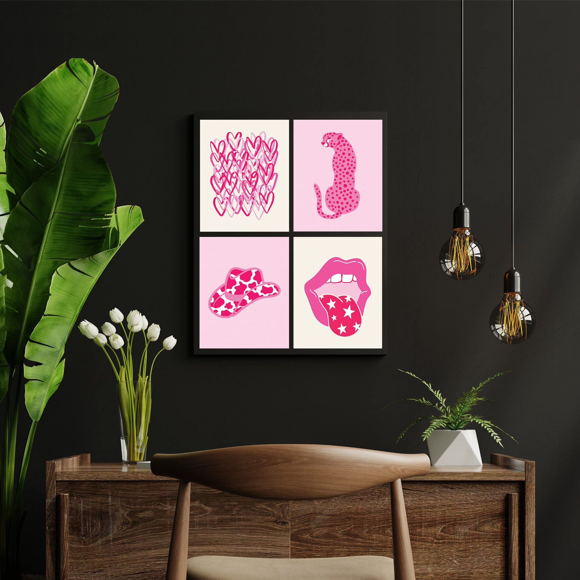 PINK ROOM DECOR AESTHETIC: These 8 x 10 inch pink preppy wall prints can be arranged in any style directly on the wall, hanged or framed. We have included 50 adhesive pads for direct wall mount. These pink posters are very cute and make great kawaii teen room decor for bedroom aesthetic, college room decor, dorm room decor, trendy stuff, aesthetic room decor for teen girls.