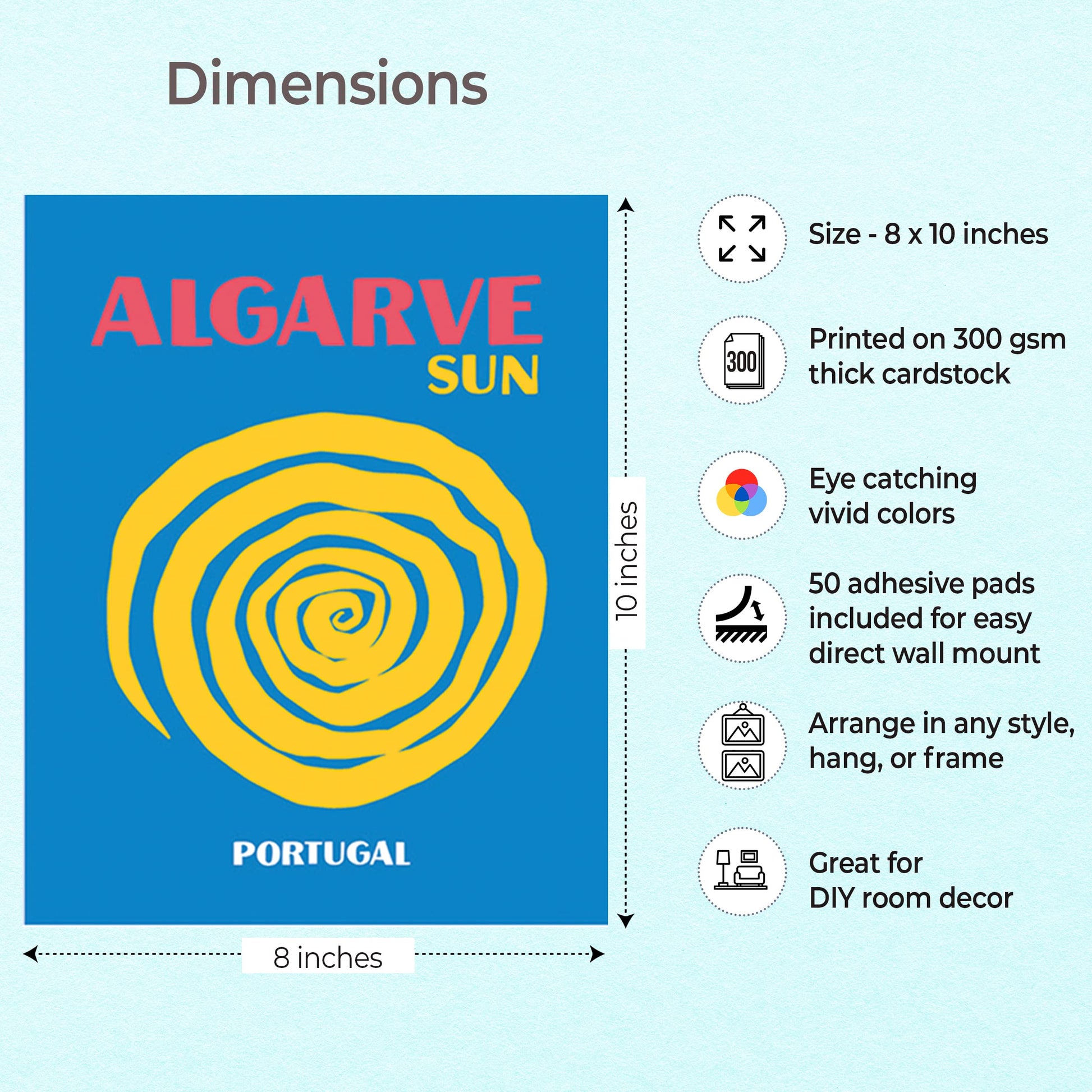 • COLLEGE DORM ROOM DECOR: Arrange in any style, hang or frame. Adhesive pads included for wall mount