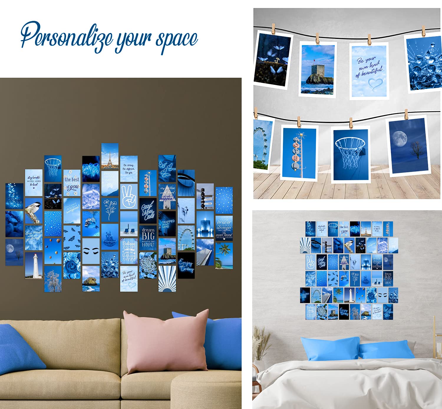 - 50 SET 4x6 INCH HIGH QUALITY PICTURES photo wall collage kit for blue wall decor, blue room decor