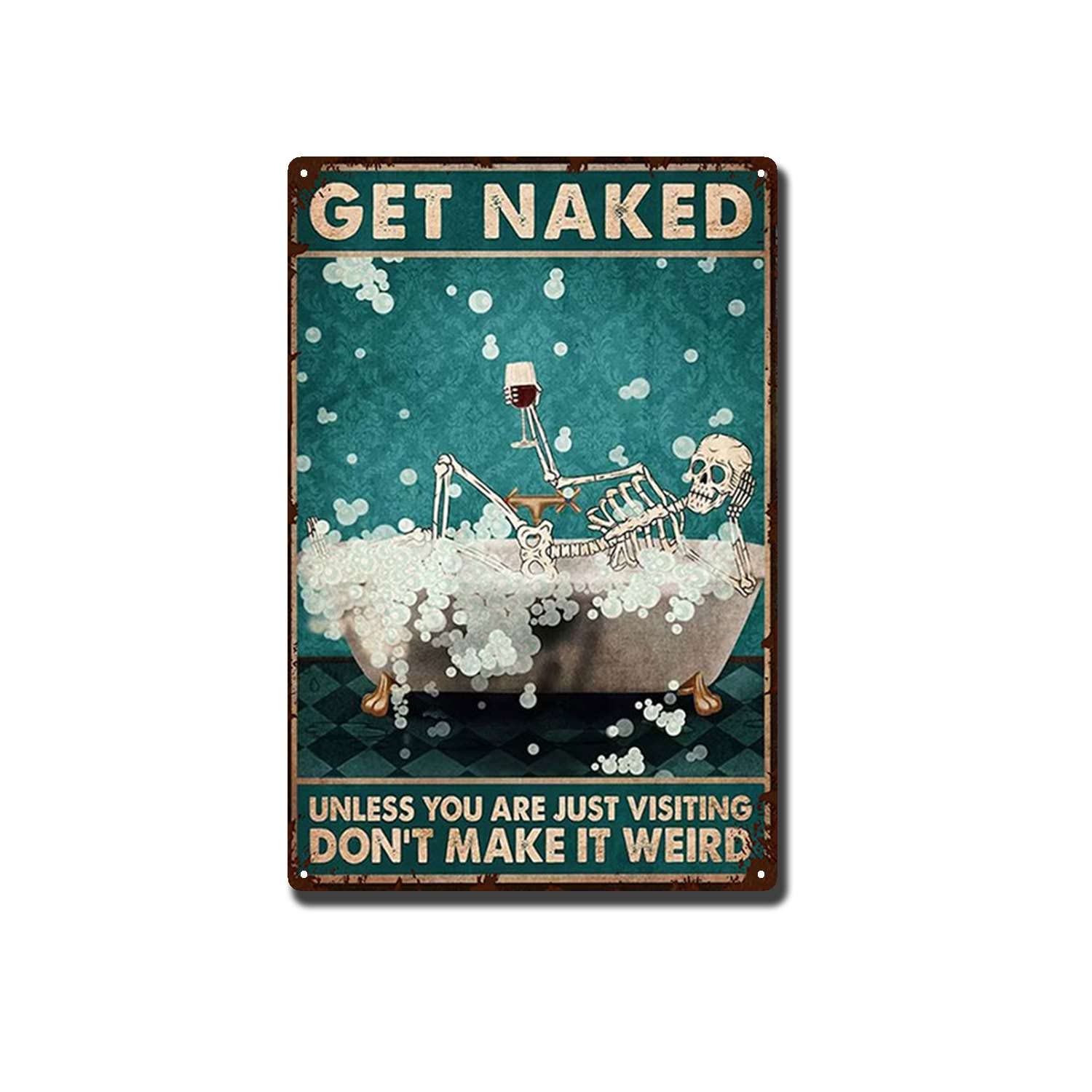 YLUYINOM Tin Metal Signs Get Naked Skeleton Poster, Skeleton Bathroom Poster, Bathroom Wall Art, Skull Bathroom Sign, Funny Bathroom Print,Funny Skull Bathroom Decor 8X12 inch-Tin Painting