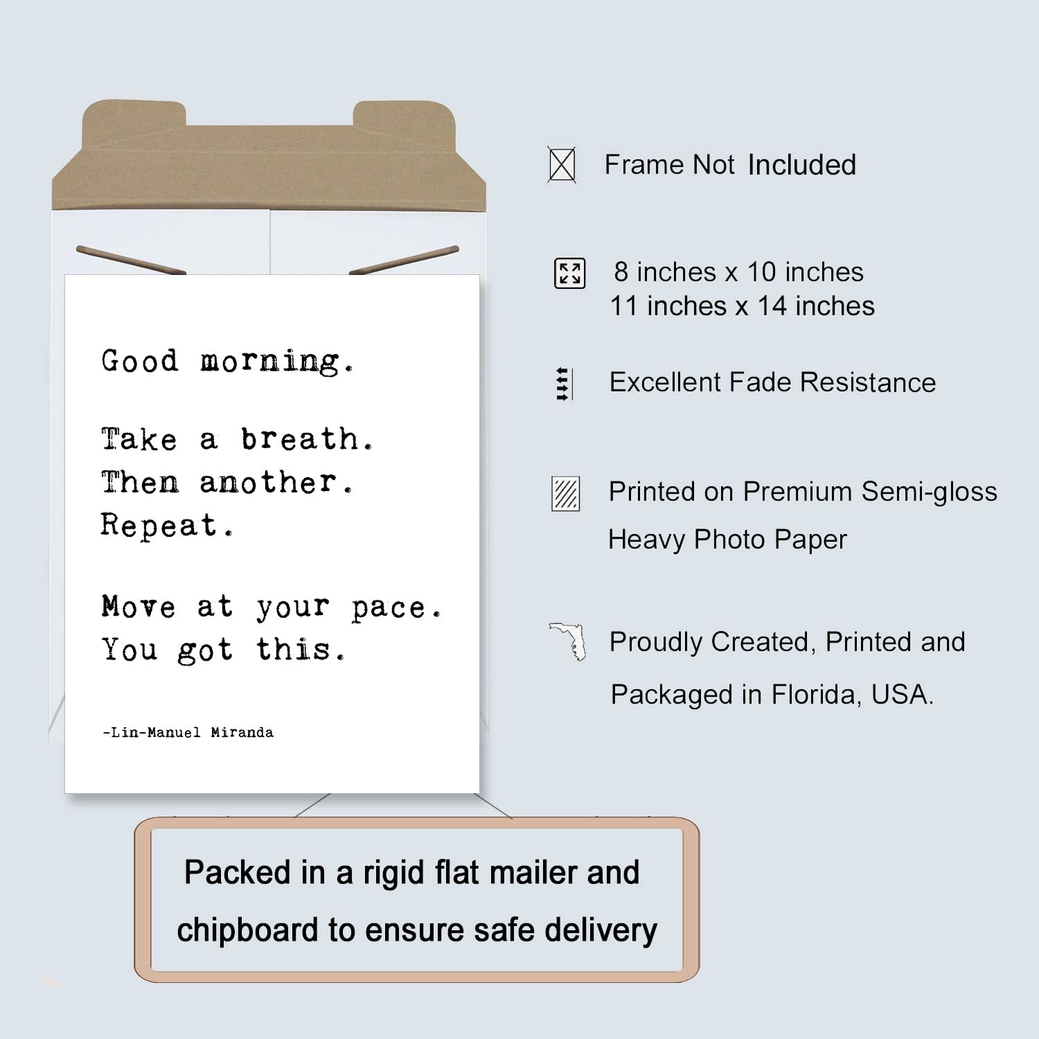 You Got This Lin Manuel Miranda Quote - Good Morning Print - Encouragement Inspirational Wall Art - Positive Quote Wall Decor for Classroom Office Bathroom - Uplifting Saying Poster NO FRAME (8"x10")