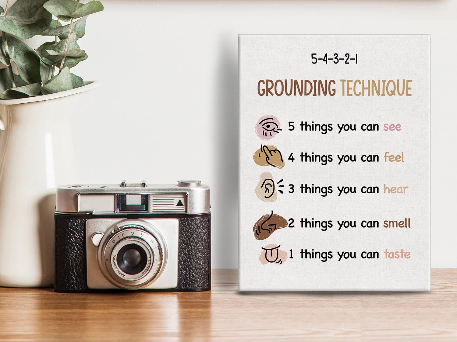 Yuzi-n Grounding Technique Print Poster Mental Health Painting Canvas Wall Art & Tabletop Decoration Home Therapy Office Artwork, Easel & Hanging Hook 12x15Inch
