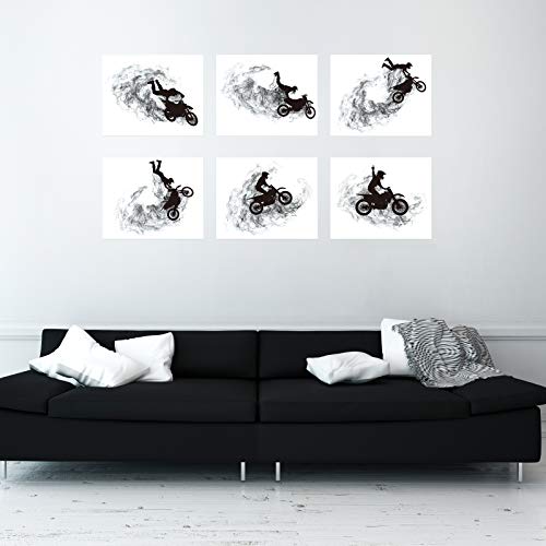 - Motocross silhouette designs: our motocross silhouette wall art prints come with 9 different designs of motions of motocross stunts; These motocross dirt bike unframed art prints deliver a dynamic and hot-blooded atmosphere of motor sport, ideal for decorating the wall, living room, office, boy's room, men's bedroom or man cave, suits for those who have a desire for being motocross stars